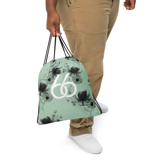 Pastel Green+Black “Translucent Wildflower” L X V I Drawstring Bag