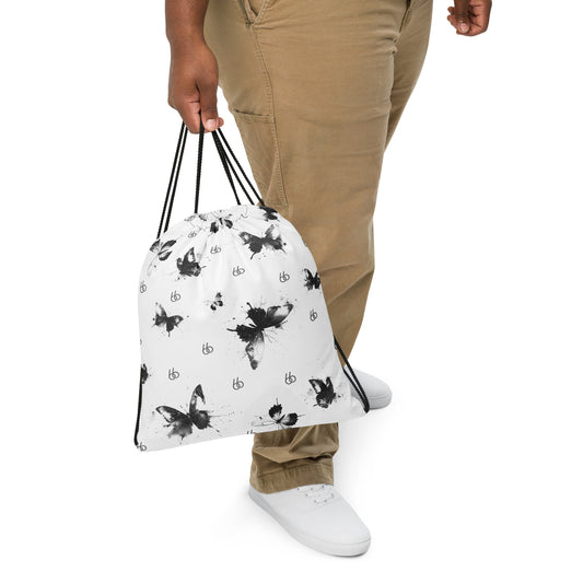 “Black+White Translucent Butterfly” L X V I Drawstring Bag